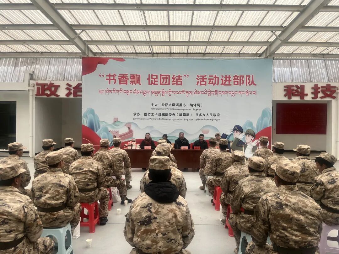 10月31日,拉萨市藏语委办(编译局)主办,墨竹工卡县藏语委办(编译局)与日多乡人民政府共同承办的“书香飘 促团结”进部队活动在77586-20分队举行。拉萨市藏语委办(编译局)四级调研员平措次仁出席。