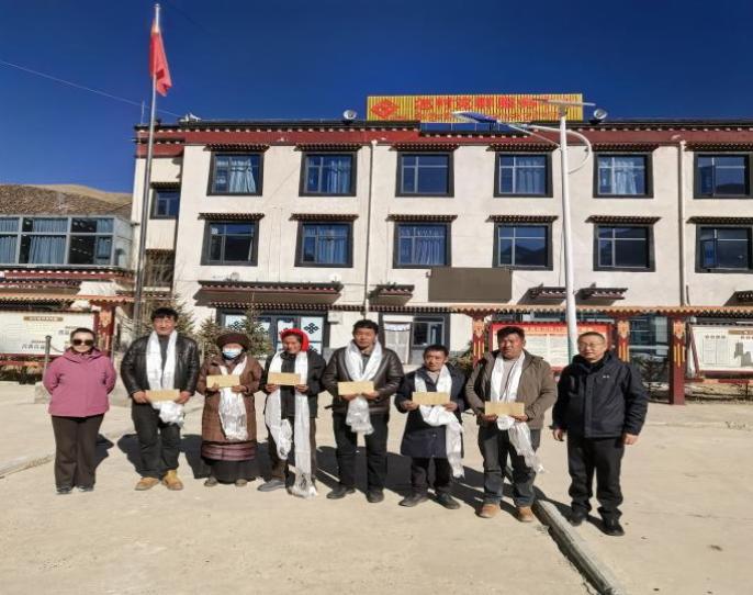 在慰问过程中,格桑平措书记一行聚焦帮扶对象与驻村工作队的实际需求,一方面为6名困难老党员逐一送上慰问金,共计4800元,将温暖与关怀精准传递到群众手中。并与队员们亲切交谈,关切询问大家在工作、生活上是否存在困难,叮嘱大家要保重身体特别强调要注意出行安全,向坚守一线的队员们献上哈达表达敬意与关怀。在与老党员们交流时,耐心询问其身体健康状况、生活中遇到的困难及实际需求,为后续精准帮扶奠定基础。