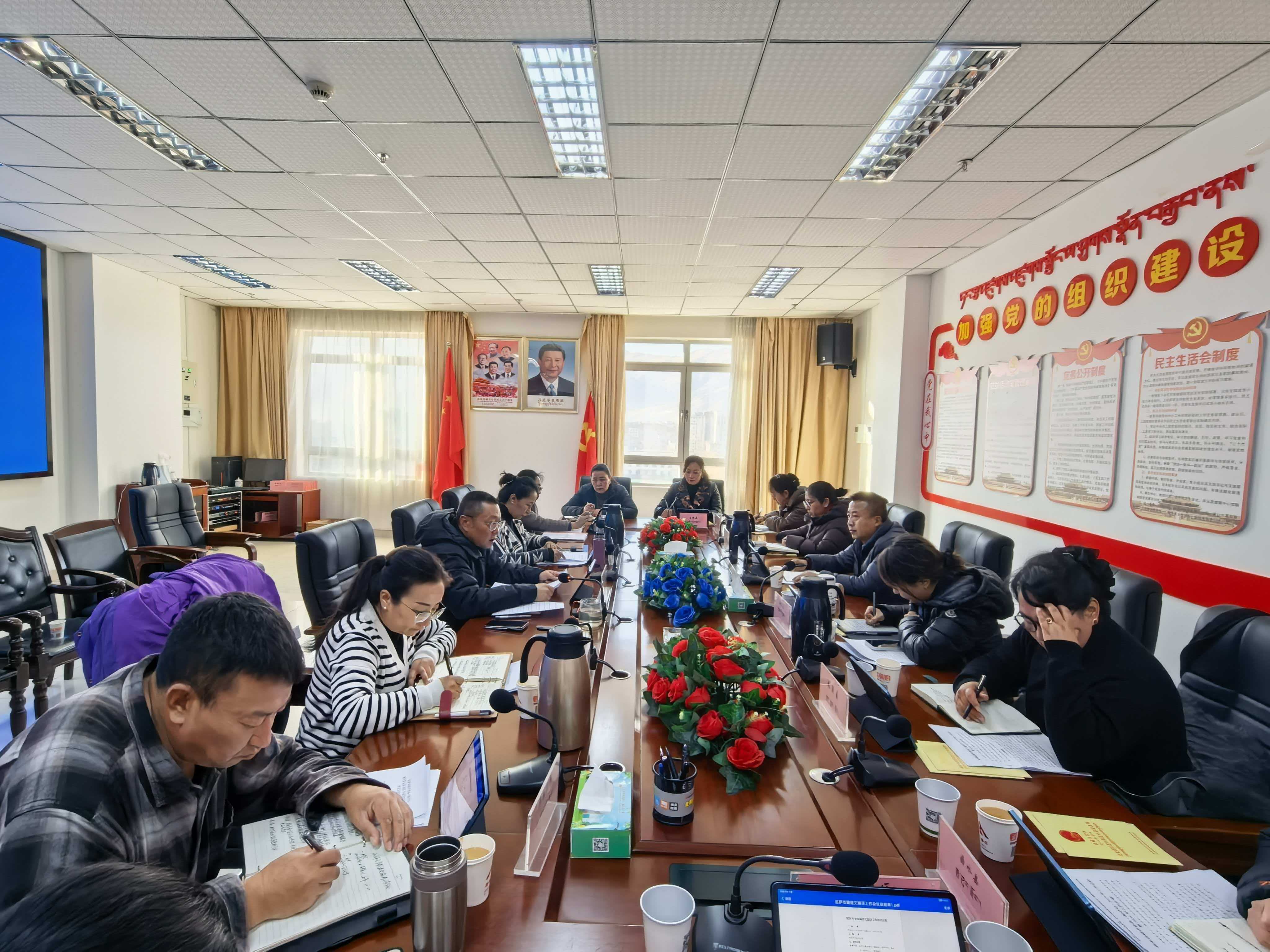 2月13日,全市藏语委办(编译局)主任(局长)工作会议在拉萨市藏语委办(编译局)召开,办(局)党组书记格桑平措主持会议,各县(区)藏语委办(编译局)主任(局长)及市藏语委办(编译局)全体干部职工参加会议。