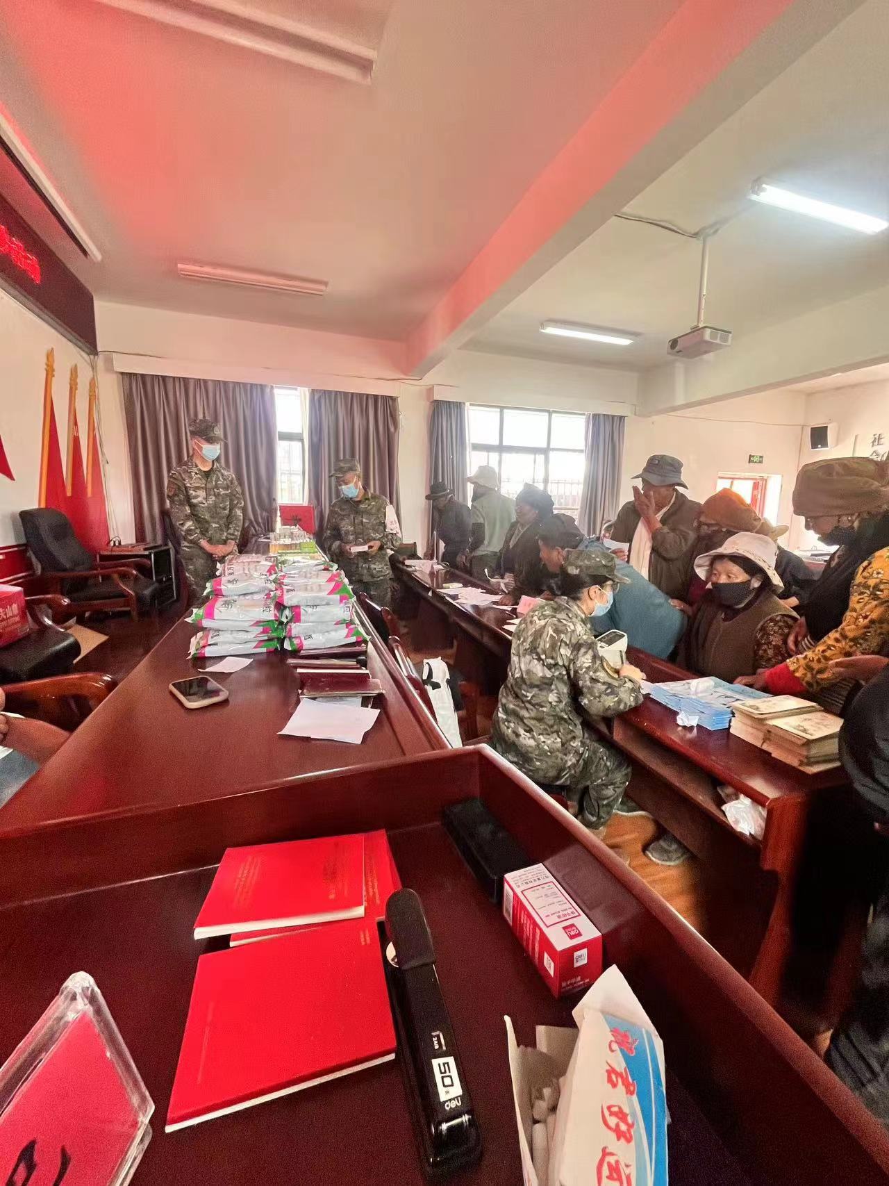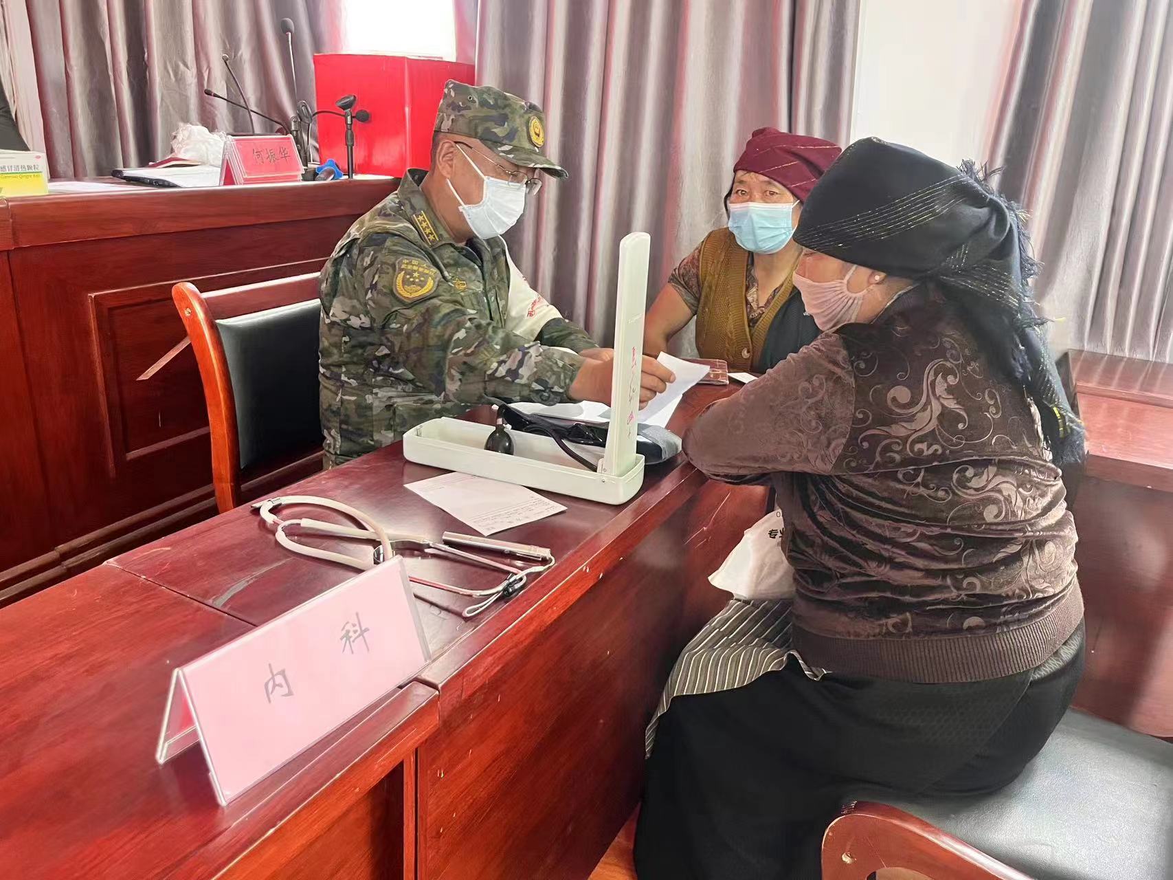 义诊现场,来自西藏武警总医院医务人员们,细致地为田嘎村群众免费开展内外科、B超、血压、健康咨询、初步诊断和一般治疗。医生们耐心地询问村民身体状况,详细解答他们提出的各种疾病问题,并根据每位患者病史,给出最适合的治疗方案及建议。同时,医务人员还就群众所提出的医疗保健及健康问题进行了解答,提醒他们饮食注意事项,引导群众建立良好的卫生习惯和健康的生活方式。